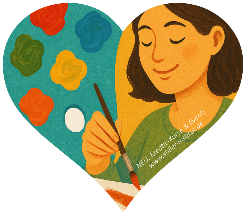 Kreative Selbstfürsorge, Kreativ sein ohne Angst, Kraftbilder erstellen, Vision-Boards der Seele, inneren Monster – vom Feind zum Freund, In Verbindung kommen für Paare – Familien – Mitarbeiter, Bilder-Coaching – sich selbst durch den kreativen Prozess verstehen lernen, Musik und Malen – wie Töne uns beeinflussen und wie wir sie für uns nutzen können, Mach ich mit Links – die emotionale Seiten an uns entdecken, Therapeutisches Schreiben…